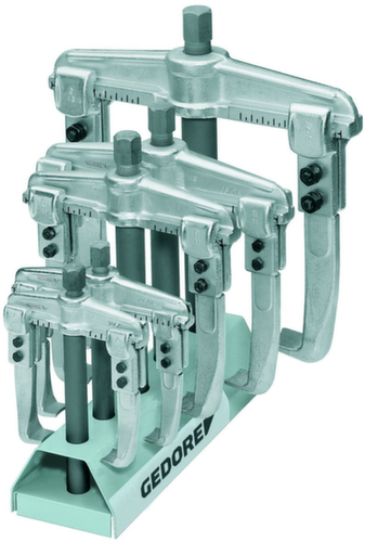 "longDescription": "Bestaande uit 5 trekkers in verschillende maten met standaard of snelspan trekhaken of volledig stalen haken met haakrem, instelschaal voor gelijkmatige aanpassing van de trekhaken. Maakt centrisch en krachtgeoptimaliseerd trekken mogelijk, zelfs bij de hoogste trekkrachten, Voor klembreedtes tot Ø 250 mm buiten, Ø 330 mm binnen, en klemmingsdieptes tot 200 mm<br>",