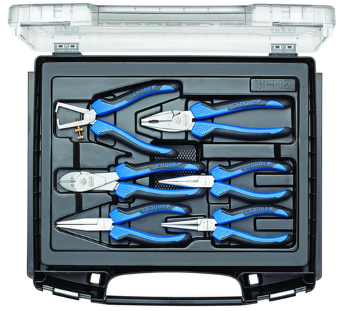 "longDescription": "Uitgebreide tangenset voor vele toepassingen, JC-versie = verchroomd, met 2-componenten handgrepen, In GEDORE i-BOXX® 72 Nr. 1101 L, Afmetingen: B 367 x D 316 x H 72 mm<br>",