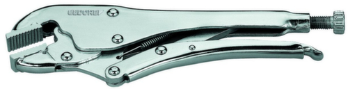 "longDescription": "Warm gesmeed, gehard, parallelle bekken, openingsmaat: 50 mm, met stelschroef, ontgrendelingshendel onder constante druk van een speciale veer, tanghuis van plaatstaal met hoge treksterkte, vernikkeld<br>",