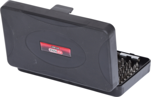 "longDescription": "met buitenzeskantaandrijving volgens DIN 3126 / ISO 1173 - C 6,3, voor handbediening en elektrische schroevendraaiers, inclusief snelwisselbithouder, ideaal voor schroeven in handel en industrie, overzichtelijke rangschikking van de meest gangbare 1/4\" bits, gezandstraald , speciaal gereedschapsstaal, in robuuste kunststof koffer<br>",