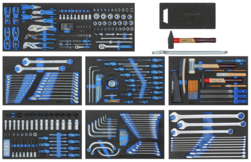 "longDescription": "Assortiment: Uitermate geschikt voor service- en onderhoudswerkzaamheden aan landbouwmachines, Gereedschap in metrische afmetingen, Met GEDORE Check Tool System: Volledigheidcontrole met behulp van 2-kleurige schuimrubberen inzetstukken, Bestand tegen oliën en vetten, In werkbank nr. 1504 XL 1710, Opbouw: Plaatstaal, corrosiebestendig en krasvast gepoedercoat, GEDORE blauw, 30 mm dik multiplex beuken multiplex paneel, Oppervlak extra beschermd door lijnolievernis, Grote opbergruimte met legbord en deur, Veiligheid door hielbescherming voor personen, Laden: Centrale vergrendeling met cilinderslot, 1 XL-lade (B 1055 x D 400 mm), 8 brede laden (B 640 x D 400 mm) volledig uittrekbaar, uitneembaar, veiligheidsslot per lade, eenhandsbediening, kogelgelagerde geleiderails, draagvermogen per lade 40 kg, onderste zwaarlastlade 60 kg, GEDORE zwaarlastwagen: Totaal draagvermogen 1000 kg, 750 kg in verrijdbaar gebruik, 2 GEDORE high-performance wielen met rollagers (bokwielen Ø 200 mm), 2 GEDORE lichtlopende wielen met kogellagers (zwenkwielen Ø 125 mm), beide met totaalrem, GEDORE trapezium-asconstructie zorgt voor: lichte loop, wendbaarheid en richtingsstabiliteit ook bij maximale belasting, Opties: Uitbreidbaar met rugwand nr. R 1504 XL-L, speciale kleuren op aanvraag<br>",