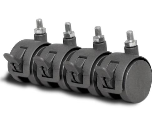 "metaDescription": "4 dubbele zwenkwielen voor vitrine - 4tweelingwielen, m. rem, v. vitrine, kunststof",