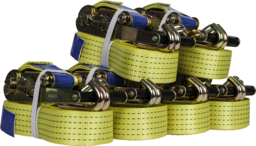 "longDescription": "<h2>Pakket sjorbanden</h2><strong>incl. sporttas</strong><br><ul><li>van met polyurethaan geïmpregneerd polyester</li><li>met profielhaken en ratel</li><li>met ingeweven tonnagestrepen</li><li>met belastbaarheidsetiket</li></ul><br><h3>Set bestaande uit:</h3><ul><li>6x 8 m, sjorbandbreedte 50 mm, trekkracht 5000 daN, 2-delig</li></ul><br><h3>Norm/ Richtlijn/ Verordening:</h3><ul><li>conform EN 12 195-2</li></ul>",