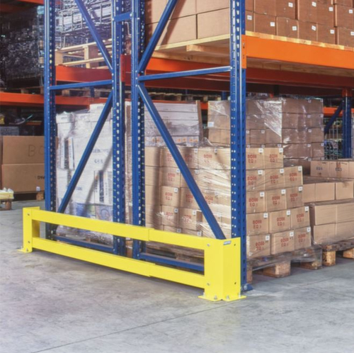 "metaDescription": "Aanrijdbeveiliging in geel voor hoeken en palen, hoogte 350 mm - H 350mm, been L 190mm, staal, geel",