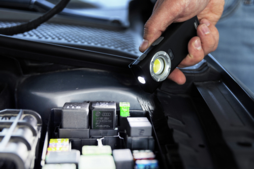 met aan-/uitschakelaar, USB-aansluiting met beschermende rubberafdekking, afgedekte magneten en riemclip voor mobiel gebruik. Brandduur 1,5 - 7 h (bij van/tot gegevens wordt uitgegaan van min. lumen/max. lumen). spot 10 h. reikwijdte 10 - 55 m. straalhoek 120 °. in 3 trappen dimbaar. display met laadindicator. met accu. Compatibel met lithium-ionen. beschermingsklasse IPX6: beschermt tegen sterke waterstralen en tijdelijke overstroming.