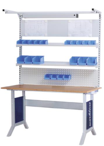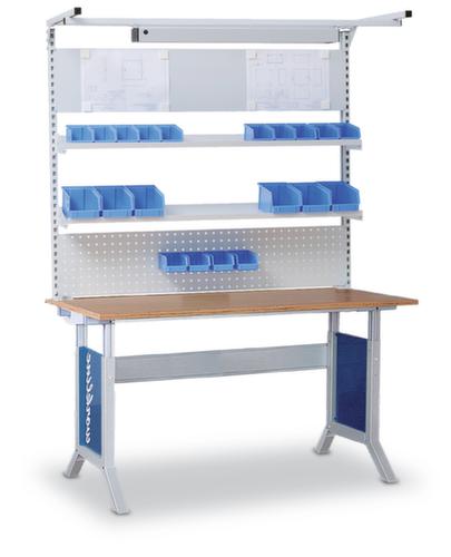 "description": "L 1500mm, m. draagzuilen, magneetwand, geperforeerde plaat, legborden, zichtbakken, licht",