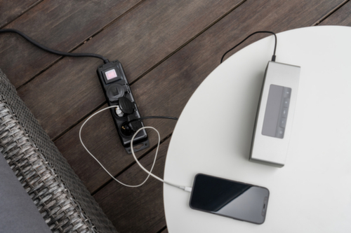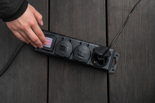 De belangrijkste details in één oogopslag:uitgerust met stekkerdozen met zelfsluitende afdekkapjes en schakelaar in- en uitschakelen. 3 stekkerdozen, verdeling: 3 x 230 V stekkerdozen. stekker recht. 45 ° gedraaide stekkerdozen voor ruimtebesparende verdeling van ingeplugde apparaten.