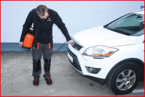 "longDescription": "Van hoogwaardige PE-kunststof, voor diverse chemicaliën zoals reinigingsmiddelen, oplosmiddelen en reinigingsmiddelen etc., met praktische draagriem, slanglengte 1,25 m, sproeikop van roestvrij staal verstelbaar en afsluitbaar.<br>",