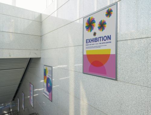 frame van aluminium geëloxeerd in zilverkleurig. hoeken in verstek. front van UV-beschermfolie. achterwand van slagvast polystyreen. achterzijde met zelfklevende strips. inhoud levering: inclusief montagemateriaal.