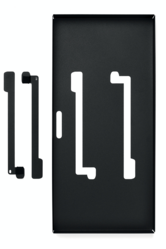 "description": "v. beeldschermstandaard, aanbouw van voren, HxBxD 52x468x221mm, m. viltlaag, insteekbaar, metaal, zwart",