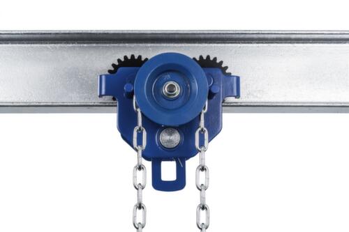 "longDescription": "<h2>Trolley</h2><strong>eenvoudige verplaatsing van lasten op balken</strong><br><ul><li><strong>veilige werking</strong> door robuust ophangoog</li><li><strong>stabiele zijplaten</strong> - 4 veiligheidslussen als wielbreuksteun, loopvlakreiniger en valbeveiliging</li><li><strong>uitgebalanceerde lastverdeling</strong> op de 4 wielen door zelfcentrerend zwenken om de as</li><li><strong>groot instelbereik</strong> door de vulringen te wisselen</li><li><strong>duurzaam met rustige loop</strong> - permanent gesmeerde kwaliteitskogellagers met afdichtingen in de loopwielen</li><li><strong>gelijkmatige loop bij elke profielvorm</strong> - conisch gevormde wielen van hoogvast gegoten staal met hoge flens</li><li><strong>corrosiewerend</strong> - handkettingen verzinkt, behuizing gelakt</li></ul><br><h3>De keuze is aan jou:</h3><ul><li><strong>beweging door de last te duwen of te trekken</strong> - naar keuze als duwloopkat of haspelloopkat</li></ul>",