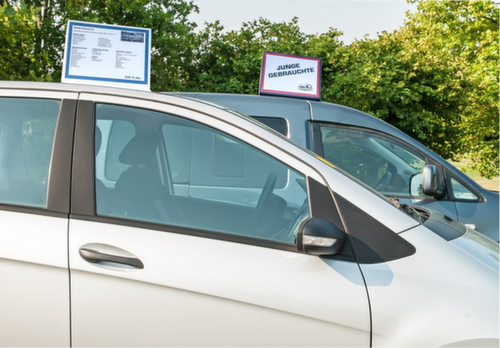 "longDescription": "Autodakborden voor zelf-ontwerp voor DIN A4 formaten. Doeltreffende en snelle prijsetikettering voor de verkoop van voertuigen. A4-computerafdrukken kunnen in een handomdraai in het transparante vak van het dakdisplay worden geschoven. De in de poten geïntegreerde magneten geven het dakdisplay de nodige houvast. Dankzij het flexibele ontwerp past het dakdisplay zich aan de kromming van het autodak aan. Geschikt voor gebruik in autodealerbedrijven en showrooms.<br>",