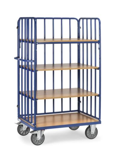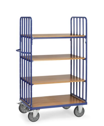 "description": "draagverm. 500kg, 4etage(s), laadvl. LxB 1200x800mm, houtetage, RAL5007, massief rubber-banden",