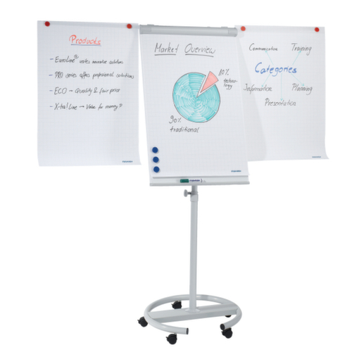 2 zijdelings uitklapbare papierhouders, houder voor flipoverblok, bak