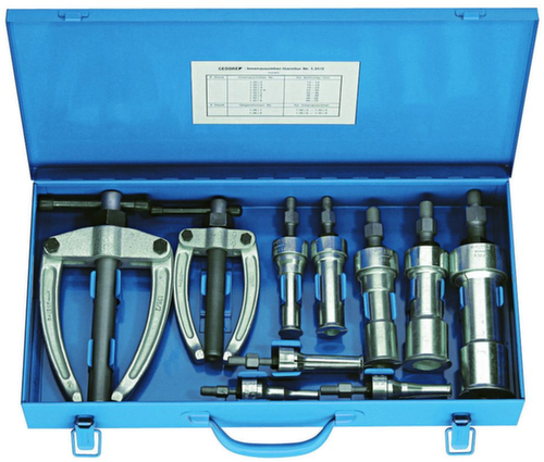"longDescription": "Sets van de meest gangbare interne extractors en tegensteunen voor het extraheren van kogellagers, ringen, bussen, Simmerrings® enz., in een stevige plaatstalen koffer.<br>",