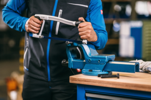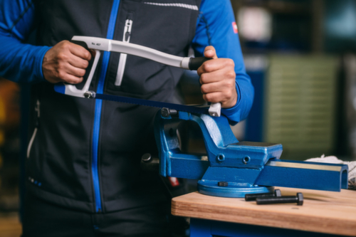 "longDescription": "Voor het zagen van metaal en staal, Veelzijdige en robuuste metaalzaag met instelmogelijkheid, Voor de beste aanpassing aan de betreffende toepassing kan het zaagblad zowel verticaal als onder een hoek van 40° worden gebruikt, Praktisch, Praktische, gereedschapsloze klemfunctie van het zaagblad dankzij blauw klemelement in de handgreep, Opgesloten paspennen fixeren het zaagblad, Ergonomisch werken en duurzaamheid worden gegarandeerd door de combinatie van de lichte aluminium beugel met een zachte, schuine handgreep, Bimetaal zaagblad 407 A<br>",