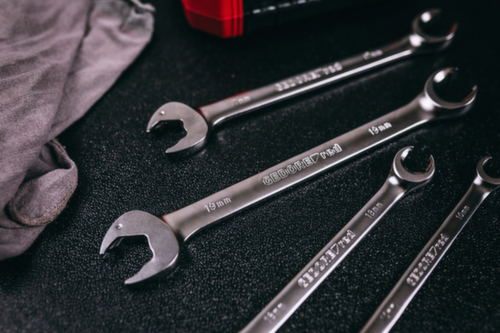 "longDescription": "Gebaseerd op DIN 3118, rechte vorm, ratelfunctie aan bekzijde, bekstand 15°, ringzijde open, hoek 15°, oppervlak gesatineerd verchroomd, chroom vanadium staal, in houder<br>",