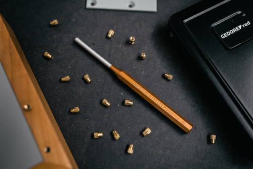 "longDescription": "Ontwerp volgens DIN 6450 , Uiteinden hamer gegloeid, Schacht koper, Tip zilver gelakt, Gemaakt van chroom vanadium staal, In metalen klapkoffer<br>",