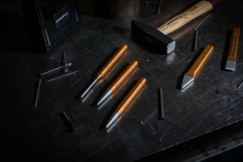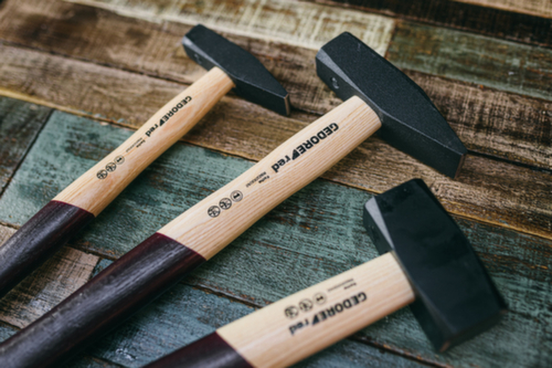 "longDescription": "Gesmede hamerkop, zwart gelakt, gemaakt van gehard staal, slagvlakken inductief gehard voor hard continu gebruik, ontwerp volgens DIN 1041, permanente markering van DIN, fabrikant en gewicht, veiligheidsafschuining zorgvuldig geslepen tot 45° op spoor en helmstok, dubbel gebogen essenhouten handgreep, gelakt handgreepuiteinde verbetert het gevoel, ringwig fixeert de hamerkop door 360° klemkracht.<br>",