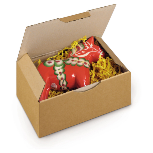 De belangrijkste details in één oogopslag:Voor pakketten tot 20 kg. Grote stabiliteit door 3-voudige kartondikte aan beide lange kanten. 2 zijdelingse kleppen voor het fixeren en beschermen van de artikelen. Werkt Bestand tegen vocht en temperatuurschommelingen. afsluitbaar met klapdeksel met sluitlipje.