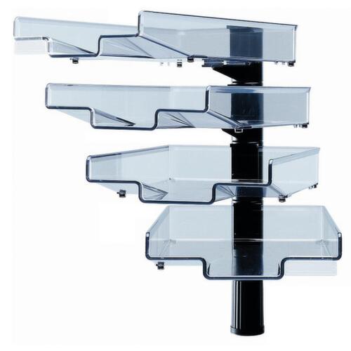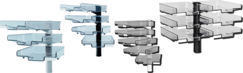 "description": "360° draaibaar, met maximaal 6 planken, bakken transparant, voet in verschillende kleuren",
