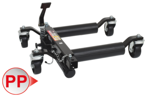 "longDescription": "Universeel inzetbaar aan bestuurders- en bijrijderszijde, zwenkwielen maken het manoeuvreren van voertuigen in krappe ruimtes mogelijk, ideaal voor het manoeuvreren van voertuigen op een vaste ondergrond, gemakkelijk in elke richting te rollen, voor plaatsbesparende opslag van voertuigen tijdens reparatiepauzes, ideaal voor showrooms, carrosseriebedrijven, sleepbedrijven etc., eenvoudige bediening met voetpedaal, met zelfsmerende kogellagers, vier massief rubberen zwenkwielen met kogellagers, kunststof steunwielen.<br>",