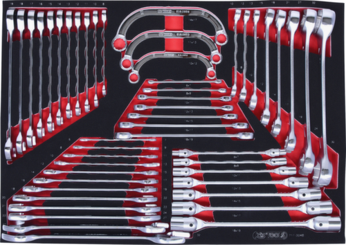 "longDescription": "<ul><li class=\"liste\">1/1 systeem inzetstuk</li><li class=\"liste\">Geschikt voor werkplaatswagens en gereedschapskisten</li><li class=\"liste\">Vaste plaatsing door nauwkeurige inbedding</li><li class=\"liste\">Bestand tegen olie en chemicaliën</li><li class=\"liste\">Inleg van hoogwaardig, driekleurig schuim</li></ul><br>",
