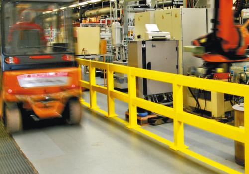 "longDescription": "<h2>Aanrijdbeveiligingshek</h2><strong>beschermt personen, inventaris en werkgebieden</strong><br><ul><li><strong>naar wens samen te stellen</strong> van een enkele trottoirpaal tot complete leuningen</li><li><strong>scheidt werkgebieden duidelijk af van verkeerswegen</strong> bv. voor verkeer met vorkheftrucks in magazijnen</li><li><strong>signaalwerking</strong> - met kunststof coating in geel</li><li><strong>minimaliseert het risico op letsel</strong> - geen uitstekende delen of schroeven</li></ul><br>De keuze is aan jou:<br><strong>Staander</strong> als begin-/eindpaal, middenpaal of hoekpaal<br><ul><li><strong>dwarsbalken</strong> - in verschillende lengtes</li><li>Weerbestendig - bovendien thermisch verzinkt voor gebruik buitenshuis</li></ul>",