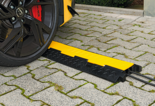 "description": "v. snelheden <10km/h, B 1000mm, overrijd H 45mm, hard rubber, zwart/geel, 2kabelkanalen",