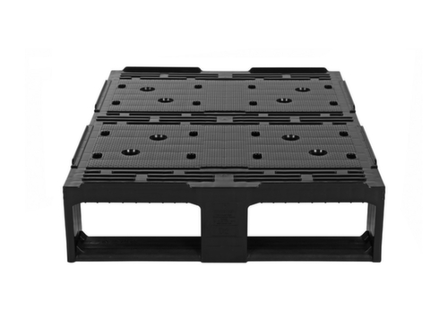 "metaDescription": "Palet op halve grootte D2 met rand, polypropyleen, lengte x breedte 800 x 600 mm - PP, HxLxB 160x800x600mm, draagverm. stat. 2000kg, sleden, bovendek opengewerkt, borgrand, zwart",