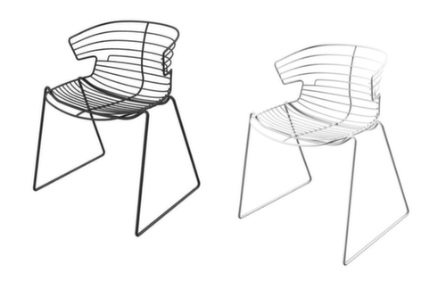 "longDescription": "<h2>Bezoekersstoel</h2><ul><li>Met open draad zitschaal</li><li>Skid frame met vloerglijders</li><li>Stapelbaar</li></ul><br>Deze bezoekersstoel is absoluut weerbestendig en dus perfect geschikt voor uw buitenruimte. Hij kan worden geplaatst voor kantine en rookruimtes, maar ook als decoratieve blikvanger in de ontvangstruimte.<br><br>De open zitschaal is volledig van draad gemaakt. De weerbestendige lak voorkomt dat het oppervlak gaat roesten of afbladderen. Met het antislipframe staat de stoel altijd stevig en de vloerglijders beschermen uw vloer extra. <br><br>Als u de bezoekersstoel niet nodig heeft, kunt u hem stapelen om ruimte te besparen. Zo neemt het weinig opslagruimte in beslag.<br><br><strong>Goed om te weten!</strong><br>De bijpassende zitkussens zijn in verschillende kleuren verkrijgbaar als accessoire. De bekleding is van polyester en de stoffering is extra moeilijk ontvlambaar, getest conform DIN 4102-B1.<br>",