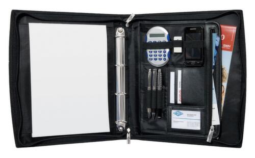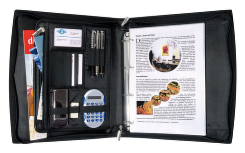 "longDescription": "<h2>Orgamap</h2><strong>met draaggreep</strong><br><ul><li>geschikt voor rechts- en linkshandige gebruikers</li><li>van hoogwaardig kunstleer en nylon met textuur</li><li>met driezijdig rondom lopende ritssluiting</li></ul><br><h3>Uitrusting:</h3><ul><li>insteekvak voor A4-schrijfblok, boven en onder open</li><li>3 verticaal aangebrachte kaartvakjes</li><li>4-ring-mechanisme, Ø 35 mm, vulhoogte 24 mm, uitneembaar</li><li>groot A4-insteekvak</li><li>ritssluiting</li><li>3 penhouders</li><li>3 elastische lussen met verschillende breedtes</li><li>buitenzijde aan elke kant een A4-insteekvak</li></ul>",
