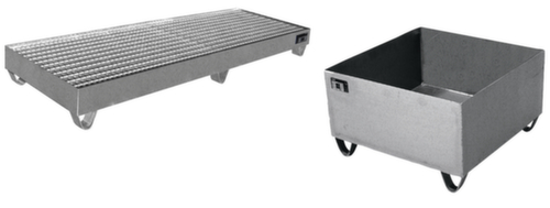 "longDescription": "<h2>Lekbak</h2><ul><li>Opvangbak van V4A roestvrij staal 2 mm dik, oppervlakte gebeitst</li><li>Gegalvaniseerd of roestvrij stalen rooster</li><li>Onderrijhoogte 100 mm voor vorkheftrucktransport</li></ul>",