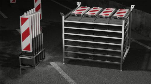 geschikt voor buiten. Geschikt voor voor gebruik bij wegenbouw. set bestaande uit: 5 flexibele geleidebakens, 1 transportbox.