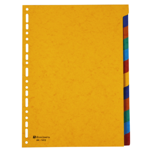 "longDescription": "<h2>Exacompta registers</h2><h3>Exacompta indexen voor ordners en ringmappen</h3><ul><li>Verkrijgbaar in indelingen van 6, 10, 12 en 26 indexvellen</li><li>Met perforatie en geassorteerde kleuren</li><li>3 kwaliteiten: gerecycleerd karton (225 g/m²), Manilla karton (225 g/m²) of PP (350 µ of 130 µ)</li><li>DIN A4-formaat</li><li>Verpakkingseenheid (PU): pak van 5 (behalve 287676: pak van 10)</li></ul><p>De Exacompta indexen zijn een handig hulpmiddel voor meer organisatie op kantoor. Ze zijn geschikt voor mappen en ringmappen in A4-formaat. </p><p>De in kleur gesorteerde indexen van PP of Manilla karton zijn verkrijgbaar met 6, 10 of 12 vakken. Bij sommige modellen blijft de index zelfs zichtbaar bij gebruik van hoesjes (287679, 287677, 287678, 287681, 4810E, 287680). Als u veel belang hecht aan milieubescherming, dan is de Exacompta index van gerecycled karton de juiste keuze. Deze is bekroond met het \"Blauwe Engel\" milieulogo.</p><p>Voor alfabetische sortering raden we de alfabetische PP index aan met 26 indexvellen van A tot Z (287676). De index is grijs en meet net als de andere indexen 22,5 x 29,7 cm.</p><p>Registerkwaliteiten en materialen:</p> <br><ul><br><li>287679, 287677, 287678: gerecycled karton 225 g/m², breedte 245 mm</li><br><li>287681, 287680: PP 350 µ, breedte 245 mm</li><br><li>287684, 287682, 287683: Manilla karton 225 g/m², breedte 225 mm</li><br><li>287687, 287685: PP 350 µ, breedte: 225 mm</li><br><li>287676: PP 130 µ, breedte 225 mm</li><br>",