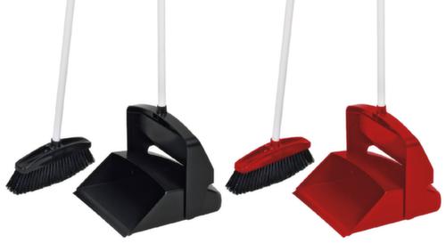 "metaDescription": "Staande schep met bezem - schep H x B x D 1000 x 260 x 250 mm, bezem H x B 955 x 170 mm, in verschillende kleuren",