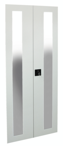 "description": "2openslaande deuren, v. reinigingsstation, HxBxD 1650x123x25mm, poedercoat., lichtgrijs, m. zichtvenster",