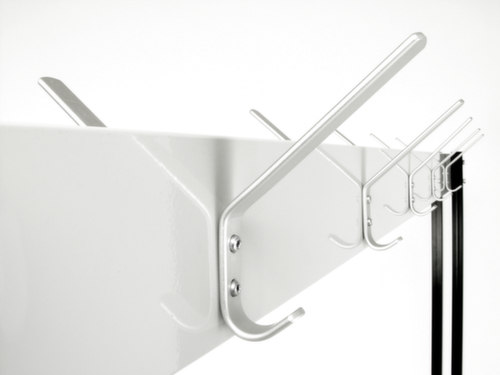 "description": "verrijdbaar, HxBxD 1800x1000x600mm, 6hoed-/6jas-/6tashaak, 4zwenkwielen, staal/alu, RAL7035/RAL7035",