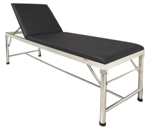 geschikt voor niet-medische zone. Ideaal voor werkplaatsen, kantoren of soortgelijke plaatsen, waar een stabiele constructie vereist is voor alledaagse werkzaamheden. ligvlak van High Density-schuimstof. bekleding van kunstleer in zwart. frame van RVS.