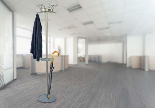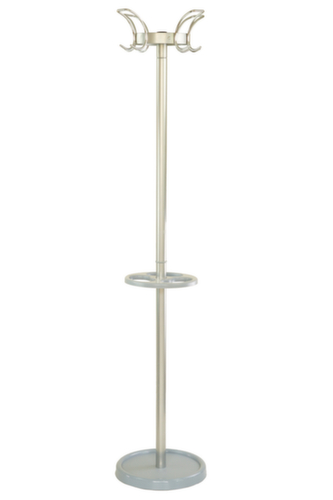 "description": "HxØ 1800x400mm, 6jashaken, parapluhouder/druppelvanger, staal/marmer, poedercoat., zilverkleurig",