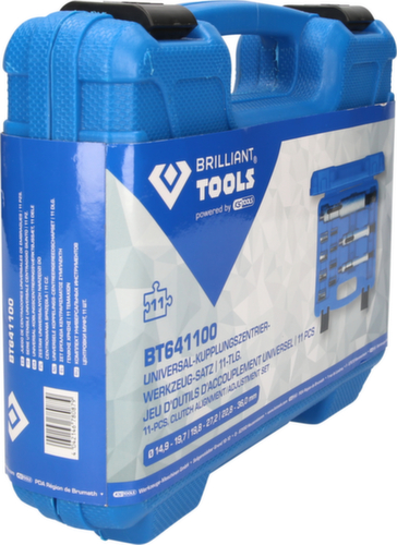 "longDescription": "11-delige set, voor nauwkeurig centreren van de bestuurdersplaat, voor voertuigen met of zonder pilootlager, inclusief 7 verschillende centreerhulzen, De BRILLIANT TOOLS universele koppeling centrering gereedschap set BT641100 maakt nauwkeurig centreren van de bestuurdersplaat mogelijk op voertuigen met of zonder pilootlager. De aandrijfplaat is uitgelijnd op het wrijvingsoppervlak van de koppelingsdrukplaat. De universele set koppelingscentreergereedschap kan voor de meeste voertuigen worden gebruikt. De diameters van de centreerhulzen zijn 12, 14, 15, 16, 17, 18 en 19 mm. De expanderende doornen hebben een spanbereik van 15 - 19 mm, 20 - 26,6 mm en 23 - 36 mm. Hierdoor is de set geschikt voor de meeste auto's en lichte bedrijfswagens. ONZE KWALITEIT: BRILJANT, ONZE PRIJZEN: SMART, Er is meer dan een kwart eeuw ervaring van onze experts in elk gereedschap. Deze compromisloze kwaliteit, professioneel gereedschap met de hoogste kwaliteit voor het zware dagelijkse werk, is voor ons een van de succesrecepten. Wij hebben geen grote verkoopstructuur en extravagante marketingactiviteiten en kunnen u de producten dus aanbieden tegen een sensationeel gunstige prijs-kwaliteitverhouding. Bespaar geld zonder uw kwaliteitsnormen te verlagen! Een kwaliteitsgereedschap van KS TOOLS.<br>",