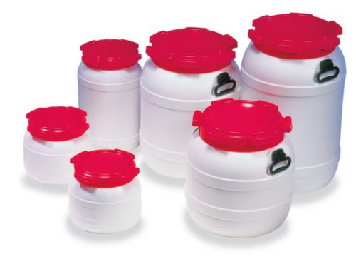 "longDescription": "<h2>Vat met wijde hals</h2><strong>gemakkelijk te vullen door grote opening</strong><br><ul><li><strong>voor het transport van vaste stoffen, poeders en pasta's</strong> - met UN-toelating</li><li>Milieuvriendelijk en robuust - gemaakt van slagvast polyethyleen</li><li><strong>water- en luchtdicht afgesloten</strong> met verzegelbaar schroefdeksel met rubber afdichting</li><li>Gemakkelijk schoon te maken dankzij gladde binnenwanden</li><li>Temperatuurbestendig van -20 tot +80° graden</li><li>Bestand tegen vele zuren en logen, op aanvraag</li></ul><br><h3>De keuze is aan jou:</h3><ul><li><strong>extra transporthulp</strong> - vanaf 54 liter met handgrepen aan beide zijden</li></ul><br>Het vat met brede hals van slagvast polyethyleen is veelzijdig, stabiel en zeer robuust. Het vat is geschikt voor granulaat, poeder of bepaalde chemicaliën dankzij de UN-goedkeuring. Vervoer of sla uw goederen veilig op met en in dit wijdhals vat!<br><br>Het bijzondere aan dit kunststof vat is, zoals de naam \"wide-neck\" al aangeeft, de grote opening. Zo kunt u het vat gemakkelijk vullen met vloeistoffen en poedervormige stoffen zonder dat er iets verloren gaat; en ook schoonmaken is kinderspel.<br><br>Je kunt de loop in verschillende maten krijgen. De container is gemaakt van wit, slagvast PE. De binnenwanden zijn glad en dus gemakkelijk schoon te maken. Het vat met brede hals heeft een volume van 54 liter en is voorzien van 2 handgrepen om het hanteren te vergemakkelijken. De andere maten zijn ook gemakkelijk te vervoeren zonder de draaggrepen. <br><br>Het materiaal heeft het voordeel dat het wijdhalsvat bestand is tegen vele zuren en logen, zodat het vervoer van gevaarlijke stoffen geen probleem vormt. U kunt ons precies vragen tegen welke zuren en logen het bestand is. <br>Het kunststof vat zelf is bestand tegen temperaturen van -20 tot +80° C. Bij het vullen moet u er echter voor zorgen dat het te vullen product is afgekoeld tot omgevingstemperatuur voordat u de trommel sluit. Dan kun je het vaatje goed afsluiten met het deksel.<br>Het rode deksel beschermt de inhoud van het wijdhalsvat en het vat tegen lekken. De rubberen afdichting in het afsluitbare deksel maakt de inhoud waterdicht en luchtdicht. De verzegeling zorgt voor een fraudebestendige vergrendeling tijdens het vervoer, die onherroepelijk wordt vernietigd als ze wordt geopend.<br><strong>Goed om te weten!</strong><br>In geval van warme vulling moet het product worden afgekoeld tot omgevingstemperatuur voordat de vaten worden verzegeld.<br>",