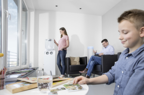 Klein, compact, ruimtebesparend: onze nieuwe WPD 50 Ws middelgrote waterdispenser past zelfs in de kleinste ruimtes in kantoren en wachtkamers, in winkels en hotellobby's. Het apparaat is verkrijgbaar met of zonder koolzuur en voorziet maximaal 25 personen op elk moment van gekoeld, vers, hygiënisch perfect drinkwater. Schadelijke stoffen die de smaak van het water negatief beïnvloeden, zoals chloor of zware metalen en zelfs virussen en bacteriën, worden betrouwbaar tegengehouden door onze zeer effectieve combifilter. Het combifilter, dat bestaat uit een actief koolfilter en een ultrafilter, zorgt dus betrouwbaar voor vers water met een uitstekende smaak. De Waterblock-functie zorgt voor extra veiligheid. De reiniging wordt veilig en betrouwbaar met chemische middelen uitgevoerd met behulp van de injectorreinigingsset met meegeleverde Bevi Tabs reinigingstabletten.