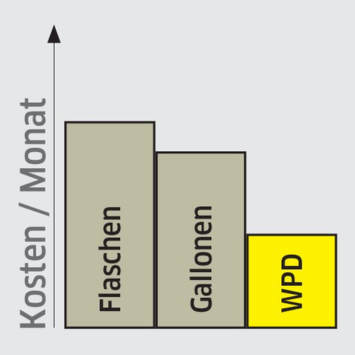 De ruimtebesparende nieuwe waterdispenser WPD 50 Ws uit de middenklasse is de ideale aanvulling op ons assortiment. Voor gekoeld zoetwaterplezier - met of zonder koolzuurgas.