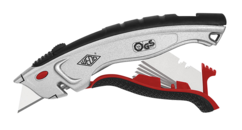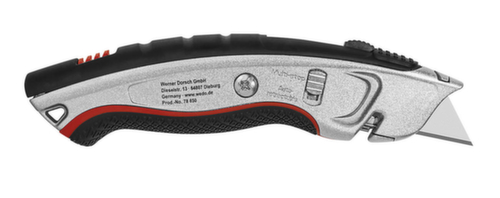 "longDescription": "<h2>Safety cutters</h2><strong>met automatisch inschuifbaar lemmet</strong><br><ul><li>geschikt voor rechts- en linkshandige gebruikers</li><li>ergonomisch gevormde metalen handgreep met rubberen greepzone</li><li>lemmet met veerbekrachtiging en automatisch inschuifbaar lemmet, zodra het niet meer in contact komt met te snijden materiaal</li><li>omschakelbaar van automatisch inschuifbaar lemmet naar multi-stoprastermechaniek</li><li>uittrede tot 25 mm</li><li>eenvoudige vervanging van lemmet zonder hulpmiddelen</li><li>met geïntegreerd magazijn voor reservelemmeten en koordsnijder</li></ul><br><h3>Inhoud levering:</h3><ul><li>incl. 5 trapeziumvormige reservelemmeten</li></ul><br><h3>Keurmerk / Getest conform:</h3><ul><li>GS-teken - TÜV-getest</li></ul>",