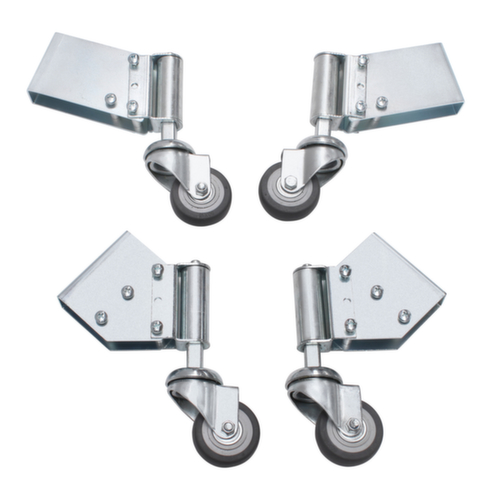 "longDescription": "<h2>Geveerde wielset</h2><ul><li>met rubber beklede, kogelgelagerde zwenkwielen</li><li>stevige stand bij het bestijgen van de trap dankzij drukveer </li><li>geschikt voor veiligheidstrappen vanaf 3 treden </li><li>zelfmontage met gereedschap</li></ul><br><h3>Inhoud levering:</h3><ul><li>incl. bevestigingsmateriaal</li></ul>VE = 4 rollen<br>",