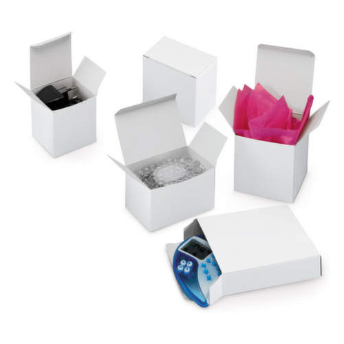 "longDescription": "<h2>Wit vouwdoosje 80 x 80 x 80 mm</h2><p>Voor het inpakken van cadeaus of producten, het organiseren of opbergen van kleine goederen - onze witte vouwdoosjes zijn uiterst veelzijdig! Alles heeft zijn plaats in deze kartonnen dozen: kleine onderdelen zoals schroeven of spijkers worden veilig opgeborgen, losse items zoals kabels en bijpassende adapterstekkers kunnen samen worden verpakt. De vouwdoosjes zijn ook ideaal als omverpakking voor cosmetica en verzorgingsproducten en als horloge- en juwelendoosjes. Waardevolle horloges of andere sieraden worden beschermd tegen krassen en zijn altijd veilig verpakt. Luxe cosmetica en parfums kunnen ook nog beter tot hun recht komen met de veelzijdige vouwdoos. Het stevige karton van hoge kwaliteit kan gemakkelijk gelabeld worden dankzij het witte, egale oppervlak en is daarom ook ideaal voor het opbergen of organiseren op kantoor. De witte buitenzijden maken de vouwdoos ook bijzonder decoratief en geschikt als geschenkdoos voor elke gelegenheid. De kartonnen doos kan bijvoorbeeld ook worden gebruikt als omverpakking voor mokken, bekers en andere relatiegeschenken, evenals productmonsters. Je kunt de vouwdoos in een paar eenvoudige stappen sluiten en voorzien van een etiket voor archivering, plakstippen of samen met vulmateriaal in de doos versturen.Alle details in één oogopslag: - Buitenkant: wit karton, glad- Binnenkant: grijs- Materiaal: stevig karton- Kwaliteit: van 400 g/m² tot 500 g/m²- Platte levering, ruimtebesparende opslag- Eenvoudige montage van de kartonnen doosDecoreer je kartonnen doos met onze cadeaulinten of lintstrikken en hij zal er bijzonder elegant uitzien. In combinatie met raffia, bijvoorbeeld, wordt de natuurlijke uitstraling van de kartonnen doos extra benadrukt. Hebt u extra opvulmateriaal nodig voor uw vouwdoos? Naast de klassieke noppenfolie zijn onze inpakzijde of kleurrijke papierwol bijzonder geschikt voor cadeaus.</p><br>",