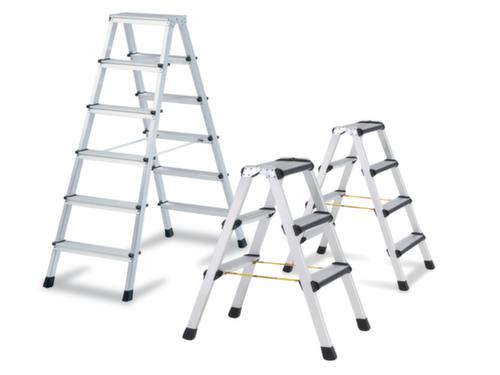 "description": "aluminium, tweezijdig, in verschillende hoogtes, treden met of zonder bekleding",