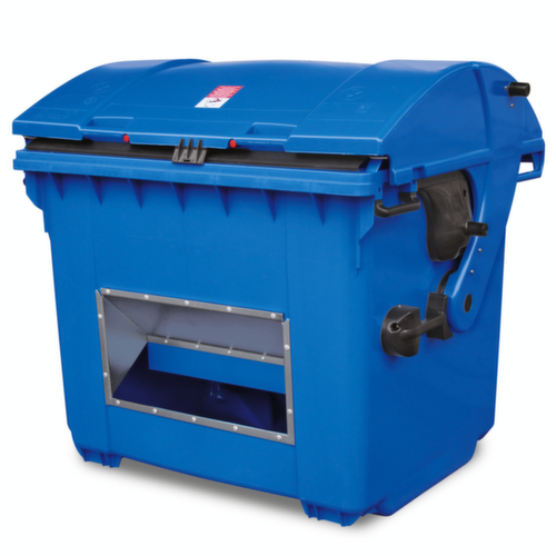"description": "HxBxD 1035x1360x765mm, HDPE, blauw, deksel blauw, m. m. ingreep",